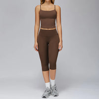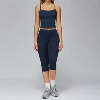 This sleek set includes a supportive cropped cami top and matching high-waist leggings designed to contour your figure while keeping you cool through every movement. The soft, breathable fabric offers four-way stretch and moisture-wicking technology, ensuring all-day comfort from studio to street.